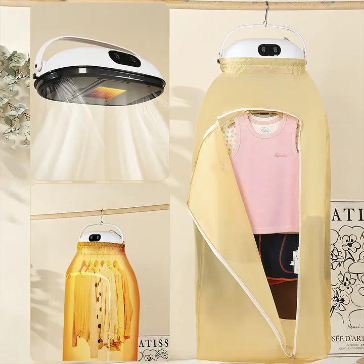 con nuestro secador de ropa portátil puedes mantener la ropa siempre seca, suave y lista, sin depender del clima ni de aparatos enormes. Es más que un secador… es la sensación de tener el control, incluso en los pequeños detalles.